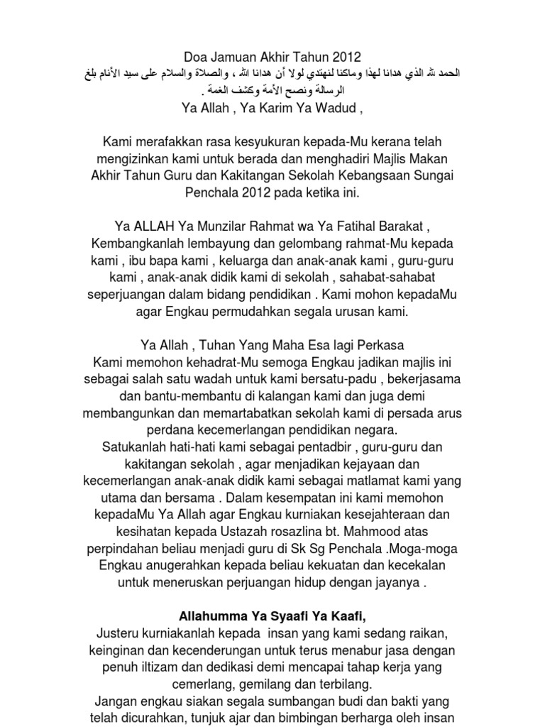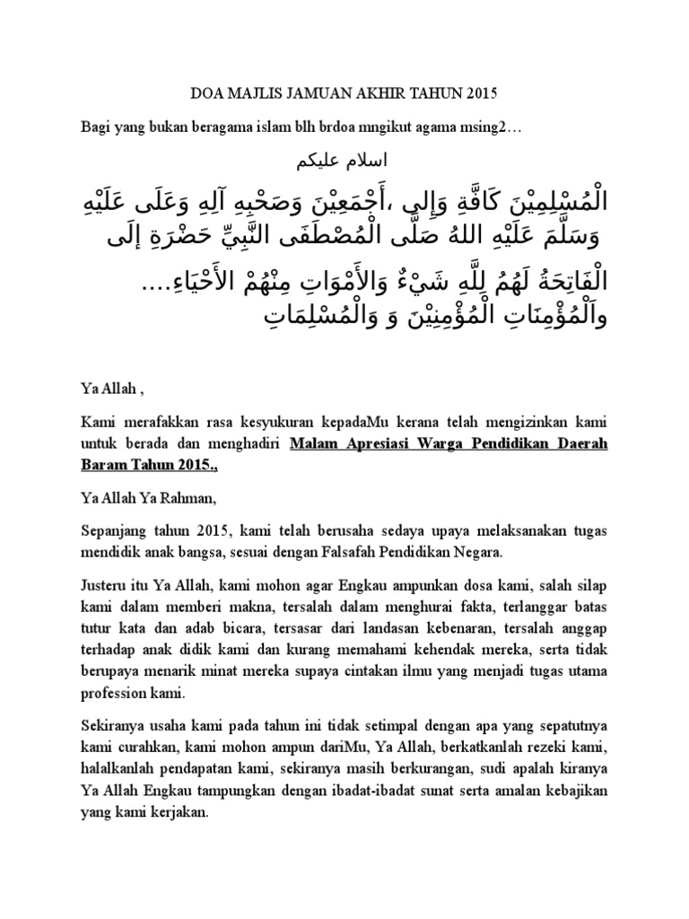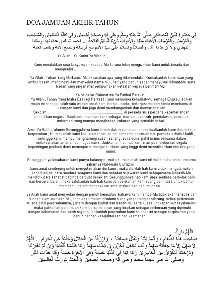 Doa Majlis Jamuan Akhir Tahun Pdf