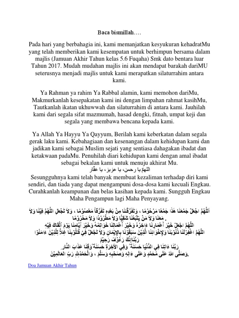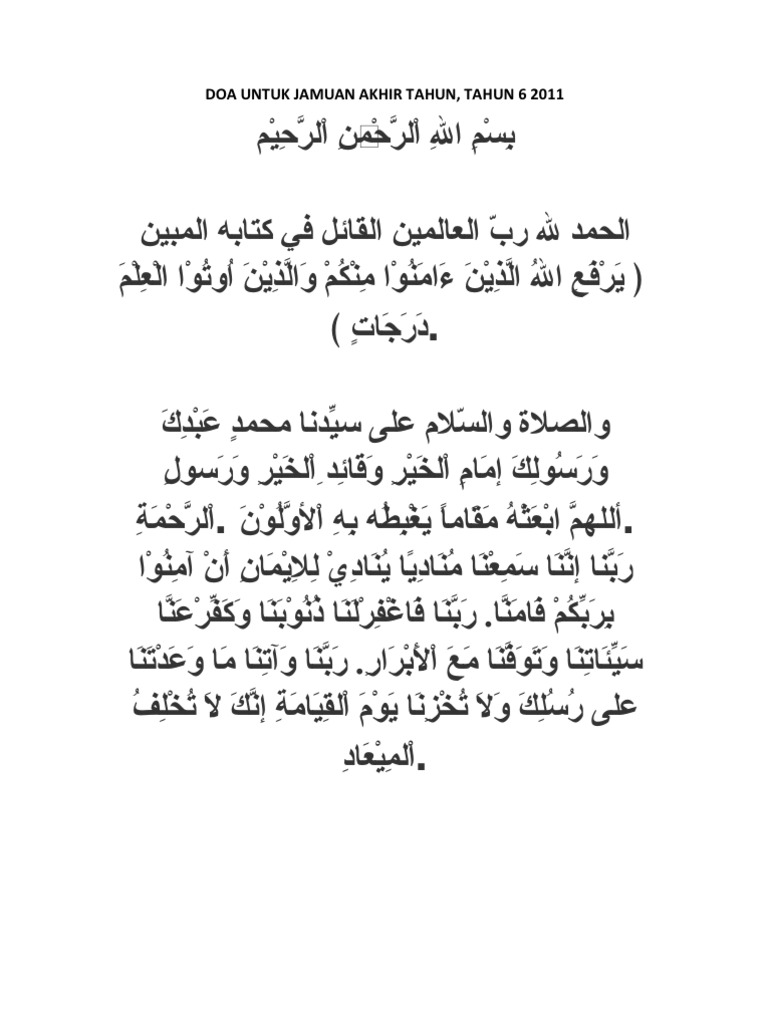 Doa Jamuan Akhir Tahun Tahun 6 Pdf